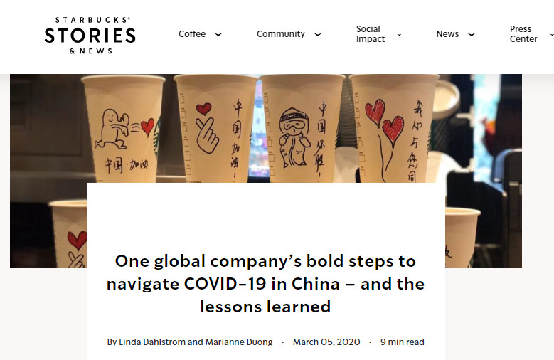 与此同时,星巴克中国掌舵人王静瑛也在官网上首次分享了该公司在中国面对突如其来的疫情爆发时所采取的一系列措施的背后故事,包括从关店决定到员工关怀和安排,以及重大危机应对经验等。