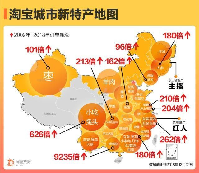 根据《淘宝上的中国城市》显示,从2009年到2018年这十年里,螺蛳粉的相关订单暴涨9235倍,强势占据“城市新特产”第一名。