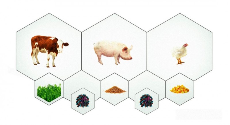 动物扮演的角色是什么?巨大的生物反应器。动物摄入植物蛋白(牧草)和水,然后转化成肌肉,人类吃掉后获得了蛋白质。