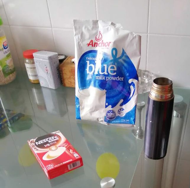 /疫情实录//图1-妈妈的睡衣名著加咖啡//图2-老爷叔的保温杯咖啡冲奶粉时间/
