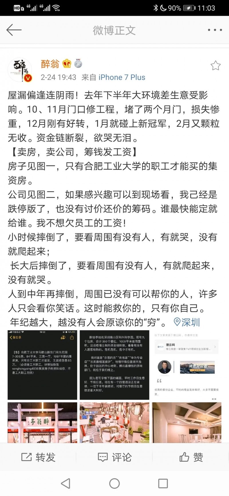 今天在疯蜜群看到一个消息,说有23个餐饮品牌要倒闭或停业了,第一个竟然是深圳的醉翁亭,还说老板竟然要卖房给员工发工资。