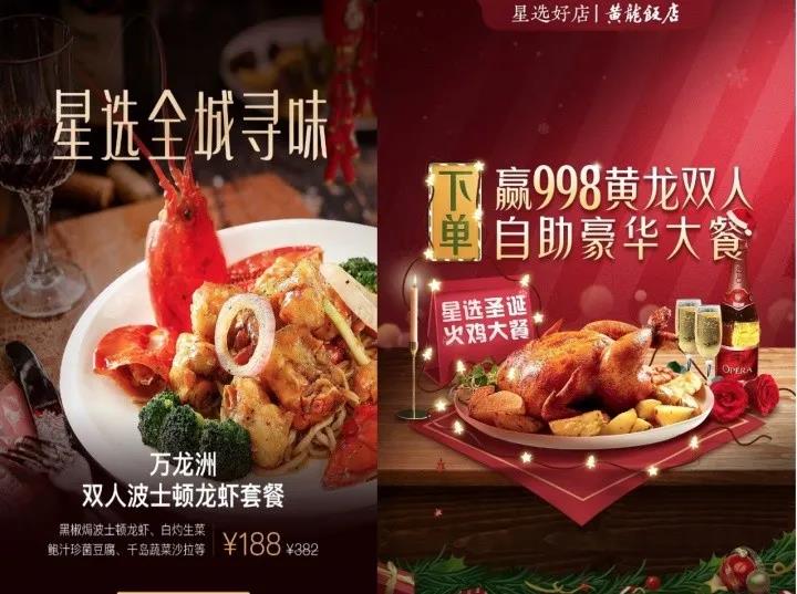 五星酒店“杭州黄龙饭店”就曾和饿了么做过一次推广活动,预订圣诞平安夜配送到家的“黄龙饭店圣诞火鸡大餐”。这份价值588元的平安夜大餐经过饿了么平台提前预热,活动订单量占到了商户备餐数40%,超出其它外卖活动的平均水平,并且与平台上新零售鲜花频道的商户进行“餐饮+零售”合作,提供餐饮+鲜花套餐组合商品。