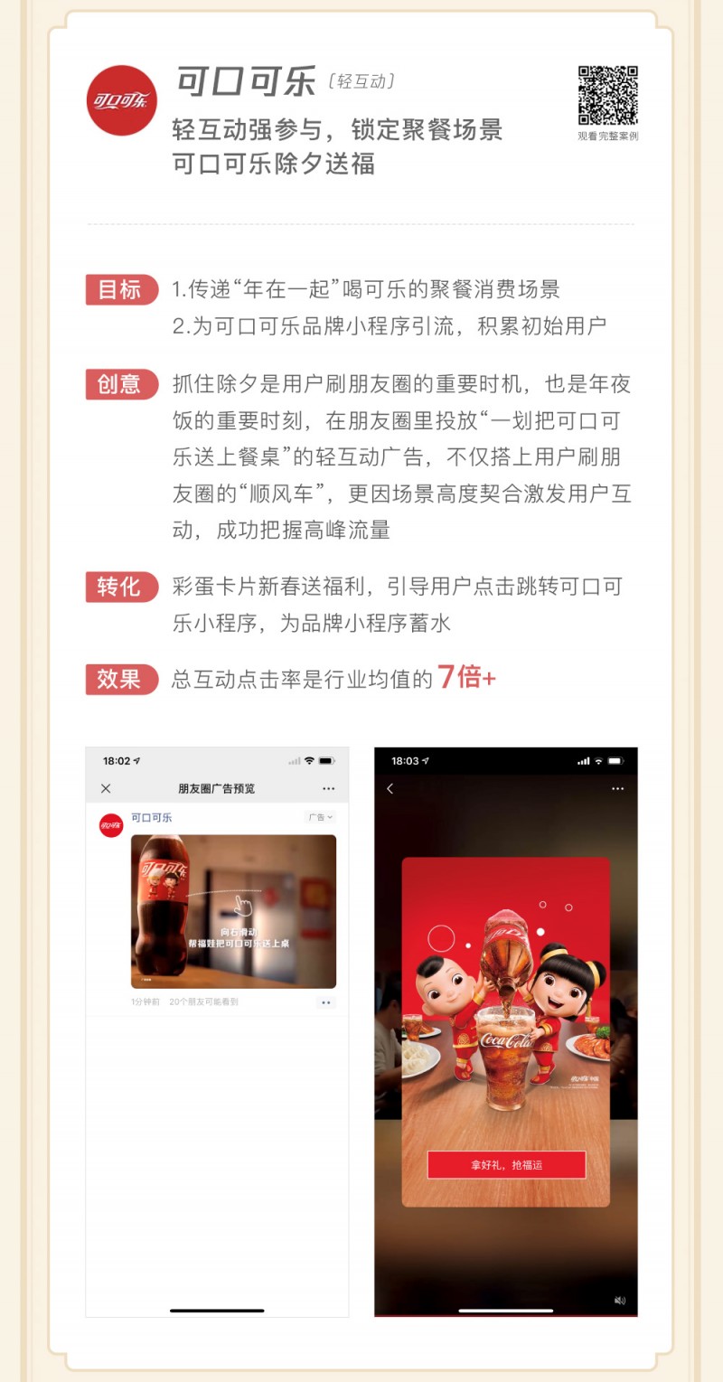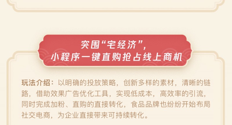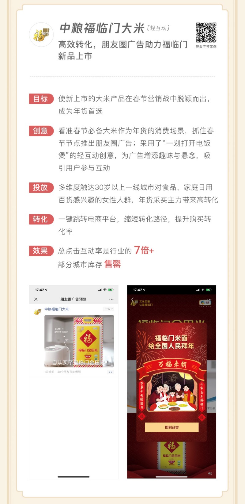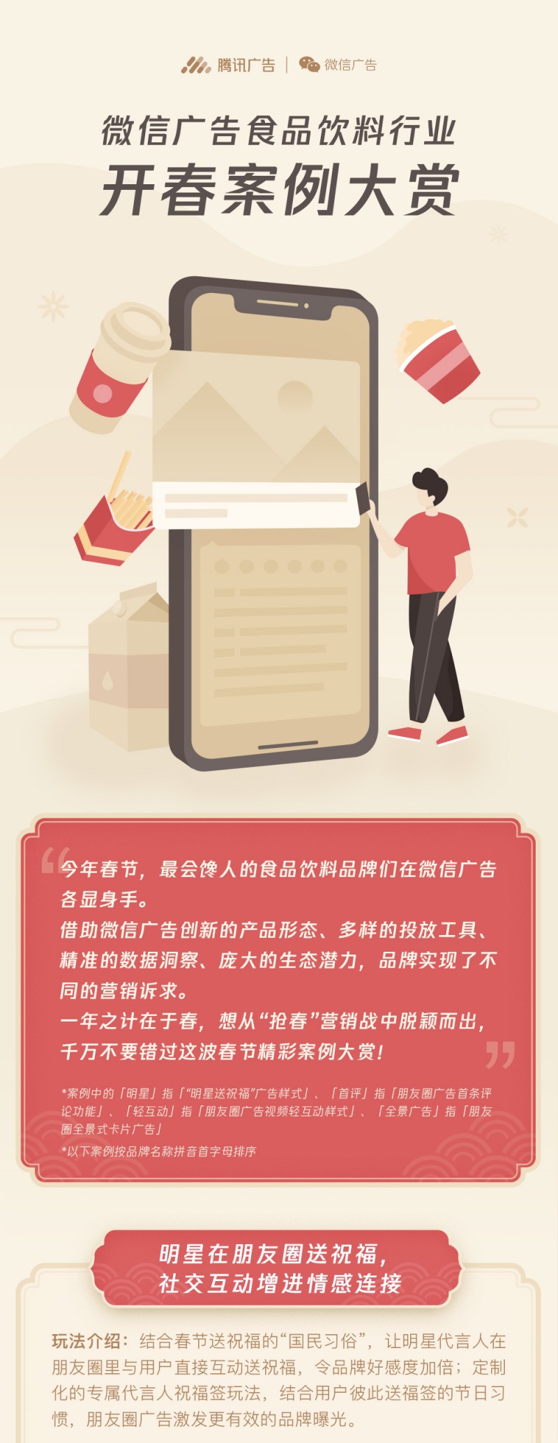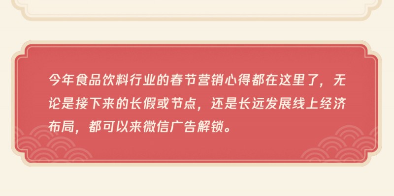 为此,我们特别盘点了2020年在春节营销中脱颖而出的微信广告成功案例,总结了这个食品饮料行业“不一样的春节”在微信广告的三大创新玩法——通过这些玩法,品牌或有机会抓住“后疫情时代”的“报复性消费”潮,突破大环境带来的重重影响,成功吸引用户关注,并最终实现满意的销售转化。
