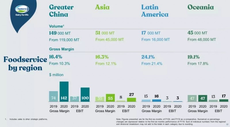 我们再来看看上半财年恒天然在中国市场的业务情况。