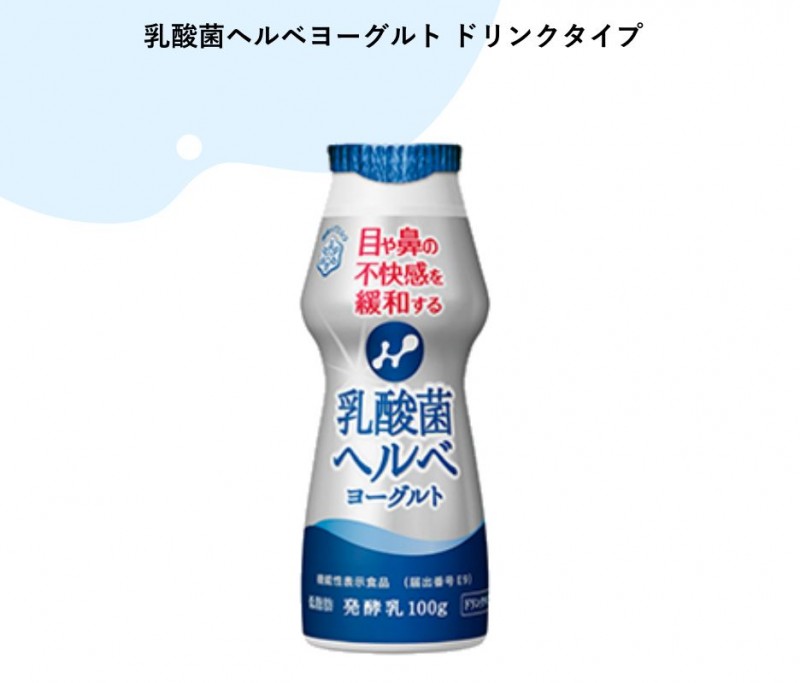 由于目前还没有治愈过敏的方法,仅仅是通过躲避过敏原或者服用药物缓解。为了让过敏人群更好的适应季节变换,日本雪印公司推出Nyu-San-kin Helve乳酸菌饮料,旨在缓解因花粉、螨虫等过敏引起的眼睛鼻子不适症状。