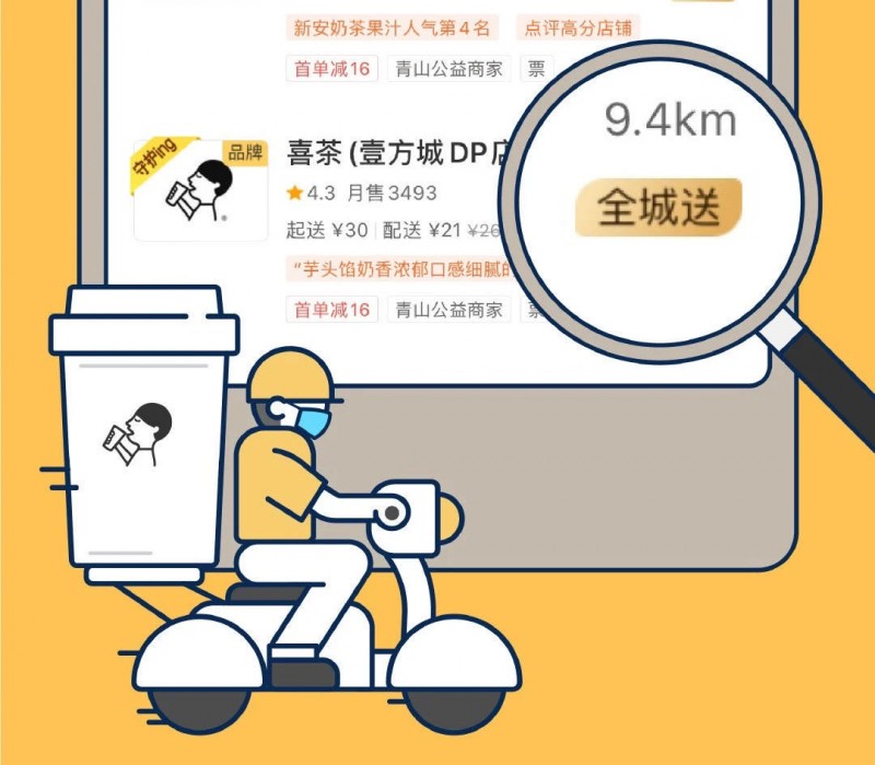 直到今天,拿起手机,依旧能点到8公里以外的喜茶外卖。