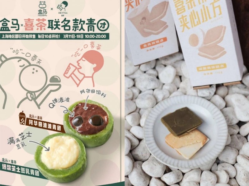 几天前,联名盒马推出2款青团产品,数据显示上线1小时就售罄。