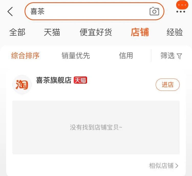 打开淘宝,搜索喜茶,“喜茶旗舰店”的展示已经呈现出来。
