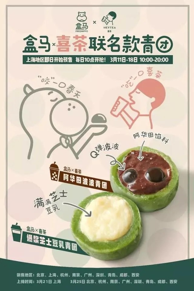 比如,半成品就是盒马看准的一个新消费趋势。侯毅透露,今年盒马专门设立了“3R事业部”(即食、即热、即加工)。最近,盒马刚与喜茶联名推出“青团”,上线1小时售罄,未来,这样的商品还会在盒马大量涌现。