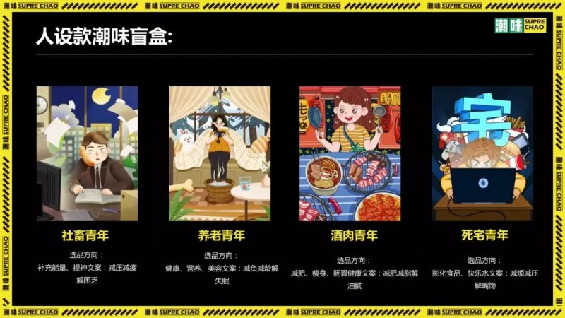 以主题化、场景式的潮味盲盒(the SupreChao Box)为载体,围绕4.69亿新消费者人设及消费需求;