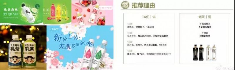 “燃茶”作为元气森林的第一款产品,一开始,所有目光几乎都集中在这款产品上,自18年魏大勋在《拜托了冰箱》展现自己一冰箱的燃茶后,王一博,邓伦、黄景瑜,SNH48等等当红流量小生花式推荐,这些明星的粉丝多为90后,与元气森林的用户画像极为匹配,借助粉丝效应,燃茶迅速出现在大众视野。