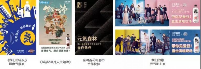 这之后参与到各项跨界活动,也是主推苏打气泡水,海报上用的都是这款产品。利用电视综艺、电影纪录片等方式,跨入文艺界大门,收获一大批粉丝和文艺爱好者。
