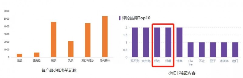 作为种草社区,元气森林在小红书的笔记多达五千多篇,这比同为网红饮品的“巴黎水”(三千多篇)、“汉口二厂”(七百多篇)等品牌多得多。从笔记分布也可以看出,燃茶、乳茶、苏打气泡水是元气森林主推以及最受欢迎的产品。从笔记内容来看,元气森林在小红书主攻包装和口味。