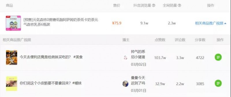 另外,在小红书与抖音寻找腰部达人推广,均得到了不错的正反馈,飞瓜数据显示,抖音近期关于乳茶的推广视频增多,而全网销量也因此不断提升。乳茶依靠疫情期间的空间差一脚踏入奶茶界,迅速占据短暂的空白市场,即使疫情结束,凭借它无糖不胖的特点,我也相信它可以保持竞争力。大胆猜测,这将会是元气森林下一个重点打造的爆品。