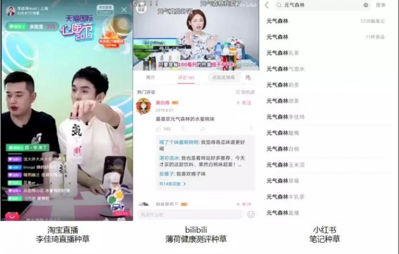 最近,元气森林也进入了李佳琦直播间,开始布局淘宝直播,集美们纷纷表示难买。李佳琦等淘系主播带货、小红书达人以图文形式进行包装、口味种草,B站、抖音借助短视频进行成分党测评,元气森林的全渠道布局,口碑带动销售,已经初见成效。