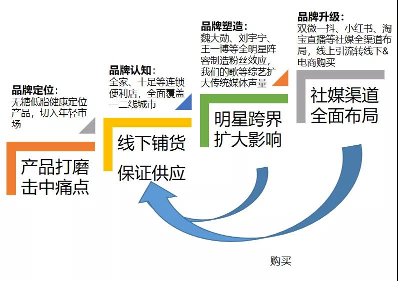 第二步:沿袭传统快消品打法,全面铺设线下渠道覆盖一二线城市,建立品牌认知,保证供应链的完整。