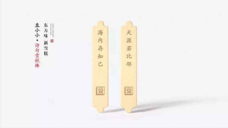 中国风元素不仅体现在包装上,更是深入细节,豆小小的雪糕棒,都会印有中国诗句,让消费者在品尝美味的同时还能够感受到古诗词赋予的意境。