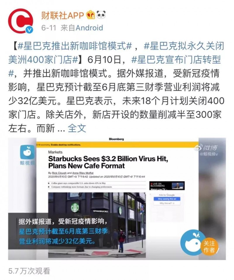 2020年,全球范围内的餐饮业都很煎熬,就连咖啡巨头星巴克也难以幸免!