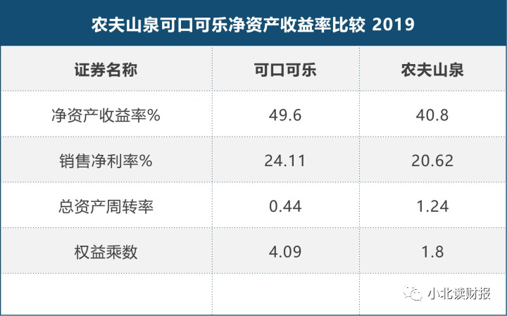 我们从杜邦分析入手,从盈利能力的角度分析农夫山泉和可口可乐的差距。