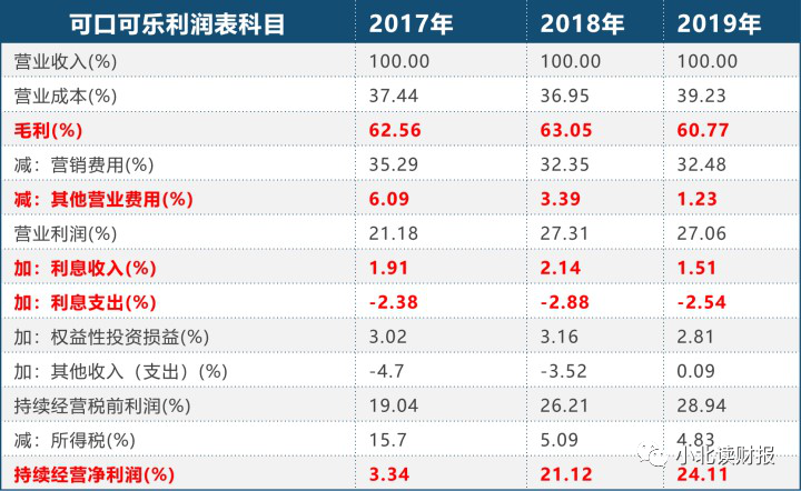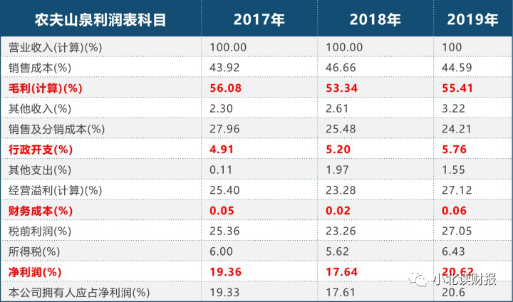 下面是农夫山泉和可口可乐的百分比利润表简表。
