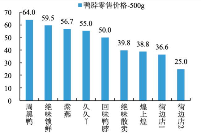 绝味青睐加盟连锁,在开疆拓土的路上一往无前,无论是在三亚的海滩,还是远赴香港澳门,你都能在美团或者饿了么上下单一份鸭脖。而周黑鸭则坚持直营,走稳重路线,扩张速度虽慢但品牌溢价远高于同行,常见于高铁,火车站等交通枢纽位置。在一众鸭脖品牌中,周黑鸭往往是单价最高的一款。
