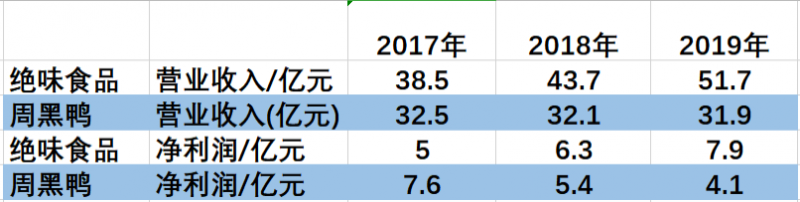 2018年及2019年,绝味食品营收及净利润开始反超周黑鸭,2019年净利润更是接近周黑鸭的两倍。