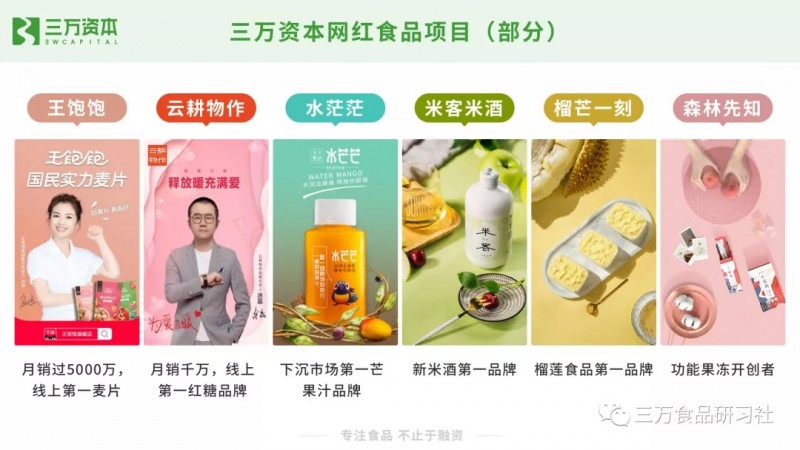 作为专注于食品行业的精品投行,三万资本深度参与了王饱饱、云耕物作、水茫茫、米客米酒、榴芒一刻等多个食品品牌从0到1的全过程,不仅仅是帮助融资,还参与了战略梳理、人才招聘、渠道对接等多个环节。今天有幸从一个亲历者的角度,来剖析一下这些网红食品品牌的崛起秘诀。