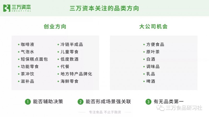 总结一下,用户、品类、公司、团队、创始人是三万资本按图索骥寻找项目的方法:一个快速增长又没有巨头的好品类,新品牌起了个好名字,创始人能力又很强,就有很大概率脱颖而出。