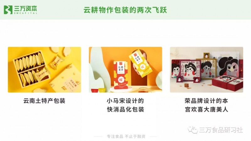 外包装是ROI最高的投放,很多品牌舍得每月千万级的投放却舍不得花个百万做包装升级,其实是没有远见的做法。云耕物作的两次外包装升级,从一个普普通通的云南土特产,到有定位、有配秤、有信任状的快消品,再到改名本宫欢喜,跟大唐美人这个超级符号关联到一起,实现了产品和公司的飞跃式发展。