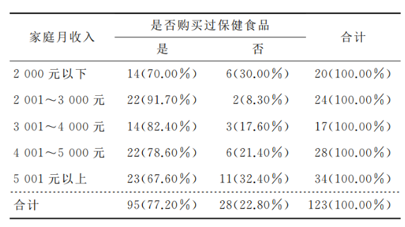 家庭月收入情况与保健食品消费之间的关系,图片来源:《老年人保健食品消费特点及趋势调查与分析》,食品与机械