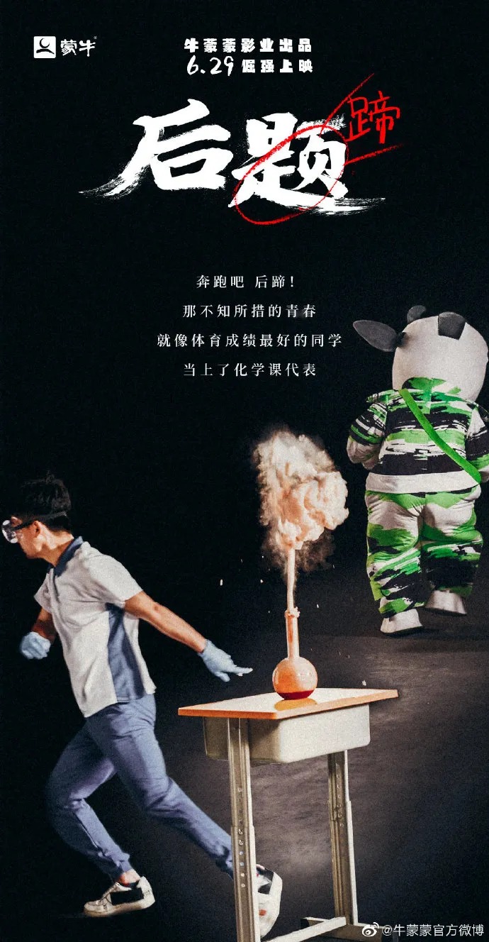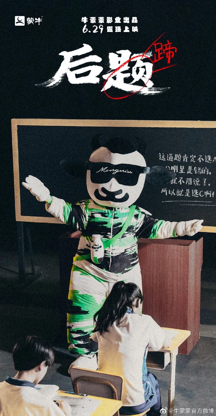标题中的“后蹄”就是谐音“后题”,看起来有点无厘头,但是片尾有呼应的片段,学生拖着吉祥物牛蒙蒙“后蹄”的画面,就将这个梗落实了,不至于尴尬。