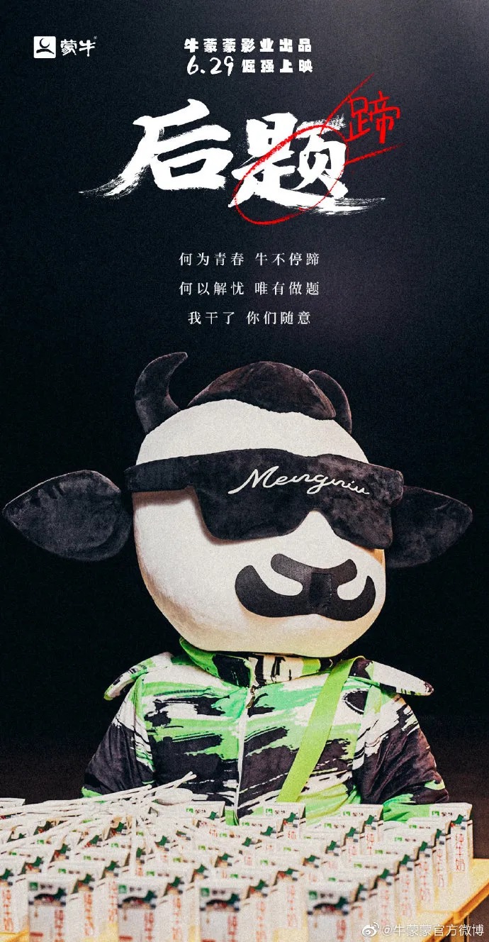 为了这个特殊的节点,奶界大佬蒙牛推出了《后蹄》和相关的包装文案,搞笑又励志。
