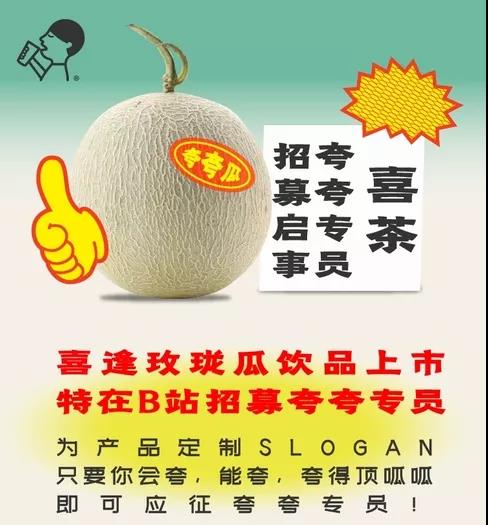 夸夸大卖场,“夸夸夸,喜茶瓜,顶呱呱”;“喝了瓜,忘了他,买多几杯笑哈哈”;“绿油油,肉多多,好不好喝你来说”。