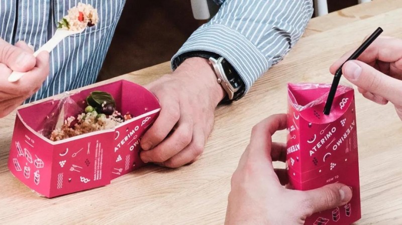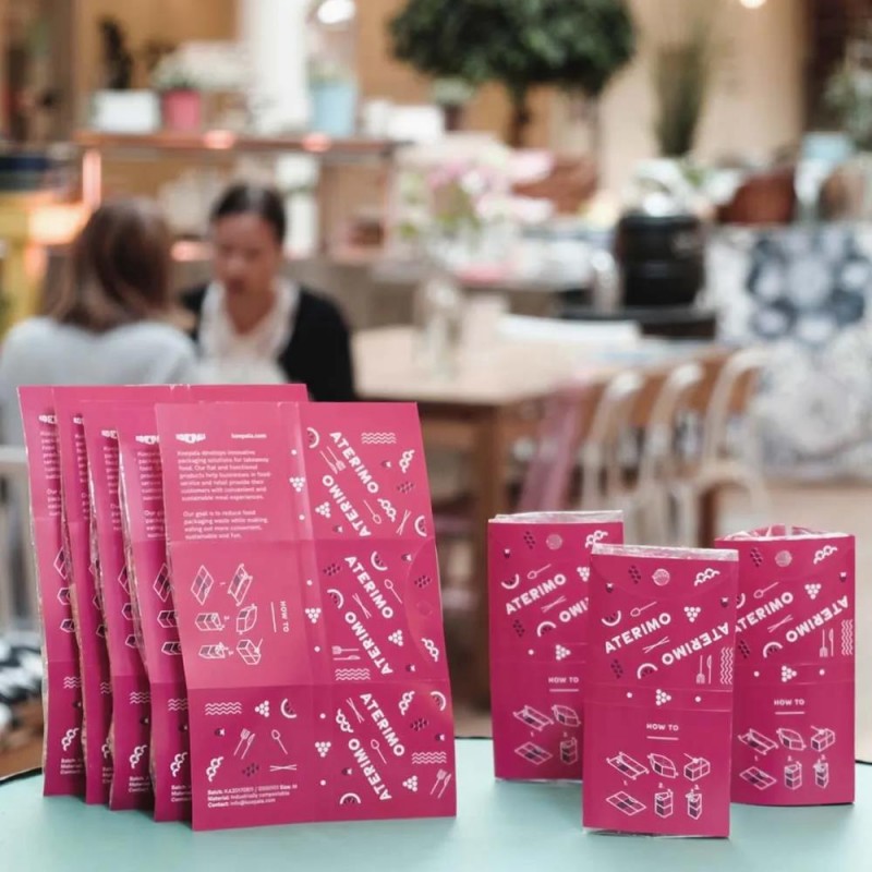 Koepala Aterimo™系列包装在装入食品时呈密封扁平状,类似牛奶的无菌枕外形包装,省去了包装盖等材料且不易漏出汤汁,适用于打包各类食品和饮料;食用时包装又可快速打开成碗状或杯状,方便消费者食用;食用后包装袋又可折叠成扁平状,便于处理。
