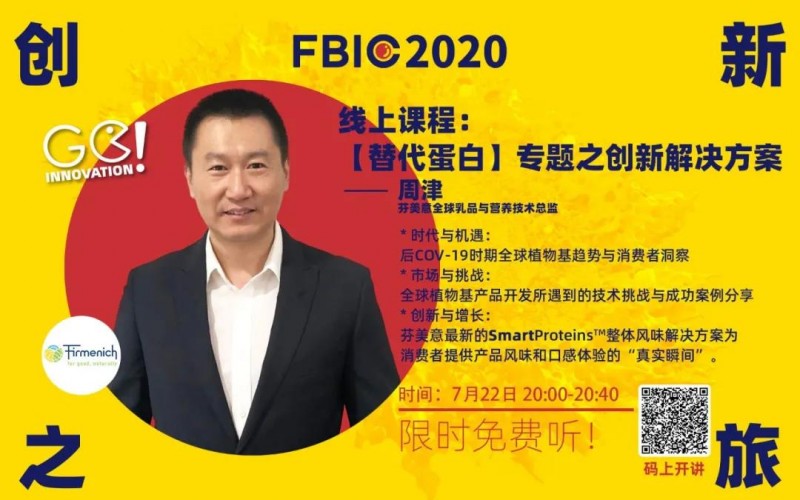 7月22日(周三)20:00-20:40,芬美意全球乳品与营养技术总监周津先生将为我们带来最新的「替代蛋白」创新解决方案,本期课程为直播形式,可免费观看,回放收费。让我们一起来寻找替代蛋白的下一个高潮吧!