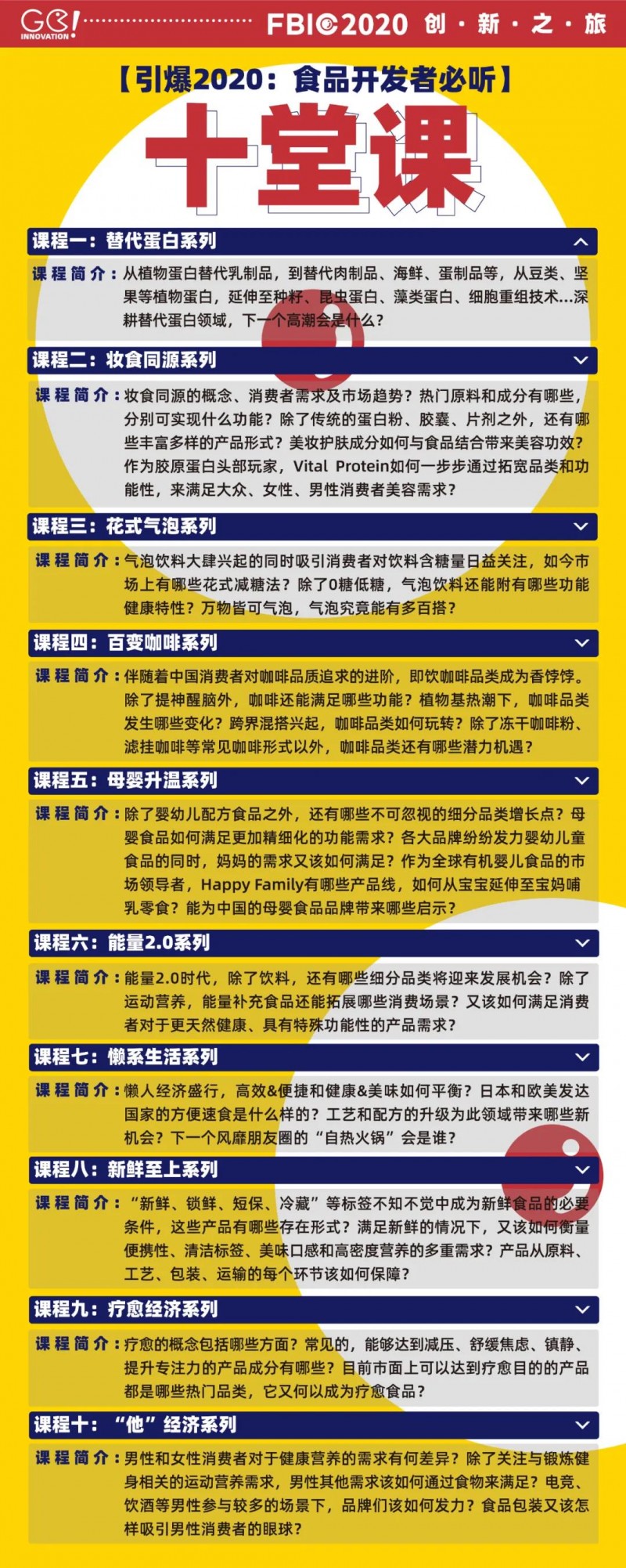 「创新之旅」首发十堂课将率先围绕Foodaily发布的10个商业热点机会展开,从精选全球创新产品品鉴、顶级专家深度商业解析、代表品牌、创新解决方案等不同视角进行剖析。