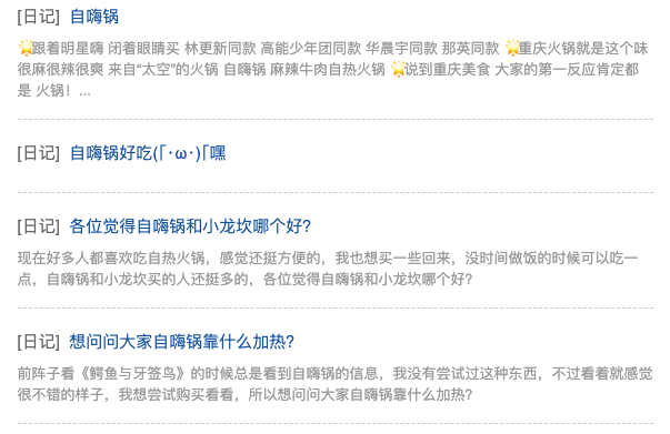 在这些营销策略下,使得自嗨锅品牌产生了很多的信息量和关键词。在微博上不乏消费者自己用上“明星都在吃的自嗨锅味道怎么样”去测评等等。这意味消费者对自嗨锅已经有了高度认知,搜索品牌关键词的这些人,一般转化率也会更高。