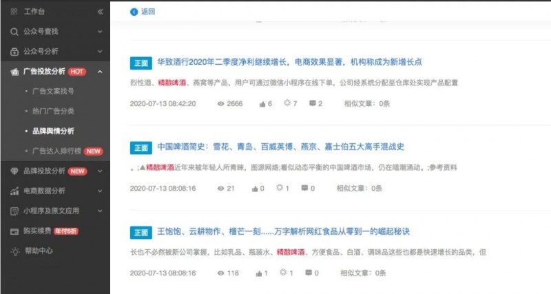 在各个数据工具中检索“精酿”相关品牌,几乎没什么品牌投放。图/西瓜数据 后台截图