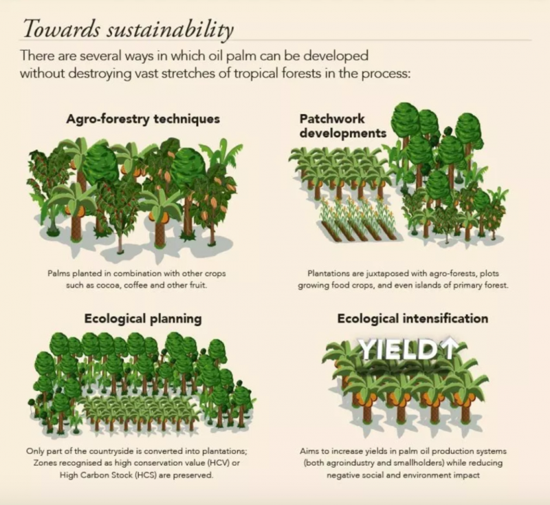 国际学术机构针对保持棕榈树种植可持续性提出的4种方法。图片来源:www.dirt-to-dinner.com