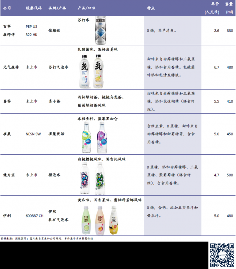 我们看好产品布局前瞻和高端、全渠道全品类运营的饮料公司,因其可以更好地覆盖不同场景下的不同消费需求,对抗潮流风险的能力更强。建议关注农夫山泉(即将上市)、康师傅(322 HK)和元气森林(未上市)。