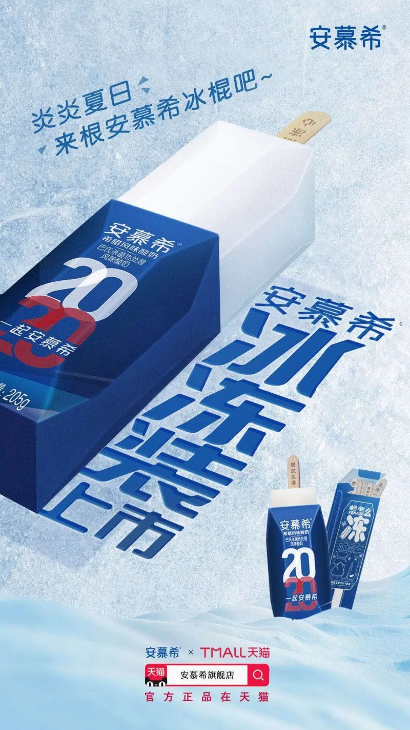 伊利也看到了“一食两吃”对消费者巨大的吸引力,以“酸奶冻着吃”这种消费者发明创造的吃法为出发点,推出安幕希冰冻套装。据了解,安慕希冰冻套装附赠夏日限定冰冻木签,酸奶DIY后,插入木签冷冻后取出即食,让你“想怎么冻,就怎么动”。一根冰冻木签“撬”起一个新品类,伊利这波创意营销找准了巧劲儿 ,值得点赞。