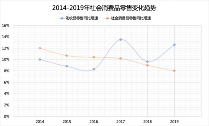 在“颜值经济”和审美多元化趋势的推动下,去年全国化妆品零售总额达到2992亿元,增速高于同期社会消费品零售总额以及其他的可选消费品类。