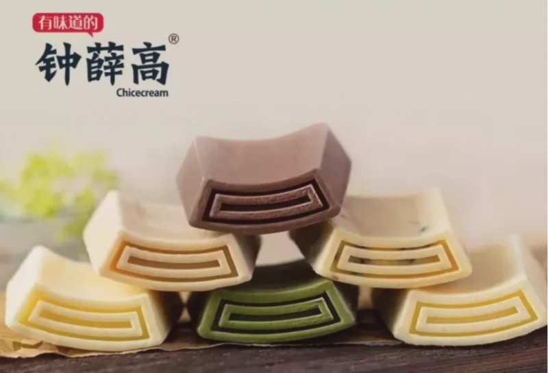 1)品牌名是“中雪糕”谐音,强调钟薛高做的是“中国雪糕”,且产品设计选择了瓦片造型,代表中国的青瓦白墙,品牌定位“新国潮品牌”。