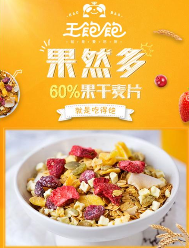 主打“高颜值代餐谷物”,定位是健康、低糖、低热量。这点类似钟薛高,细分出了新的品类。针对人们减肥的需求痛点,以低温烘焙麦片为切入点,让消费者摆脱“好吃怕胖”的困扰。工艺上,与传统西式裸燕麦和膨化式燕麦不同,采取低温烘焙方式,保留大部分营养元素,留住纤维;控糖上,不添加白砂糖或蜂蜜,选择加入了近乎0热量的甜菊糖苷,减少热量摄入;此外,产品还加入了益生元,将高纤维进行到底;最后,在麦片基础上还加入了数十种酸奶大果干,让麦片看上去颜值更高,口感更好,从而满足现在年轻女孩的多重需求。而且,旗下包括酸奶果然多、草莓椰香烤燕麦、蜜桃乌龙烤燕麦等十几款产品,根据用户大数据动态调整,在各电商平台弹性上新。
