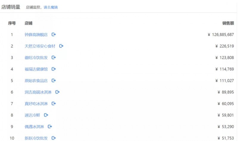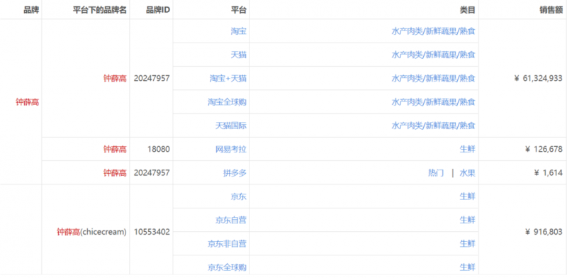 说明:下图中销售额是2020年6月钟薛高在各电商平台销售额。