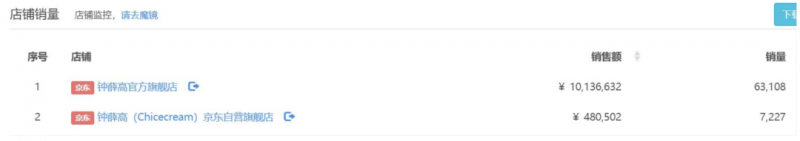 京东渠道的店铺数截止2020年6月一共2家,钟薛高官方旗舰店(2018年7月上线)和钟薛高自营旗舰店(2020年3月上线),无其他第三方店铺。