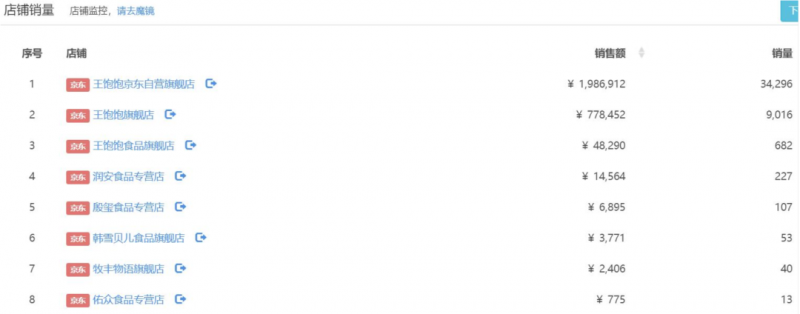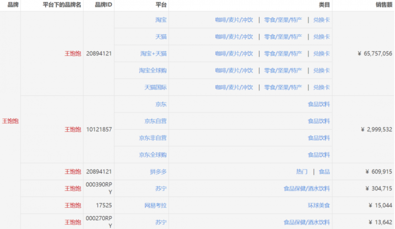 说明:下图中销售额是2020年6月王饱饱在各电商平台销售额。