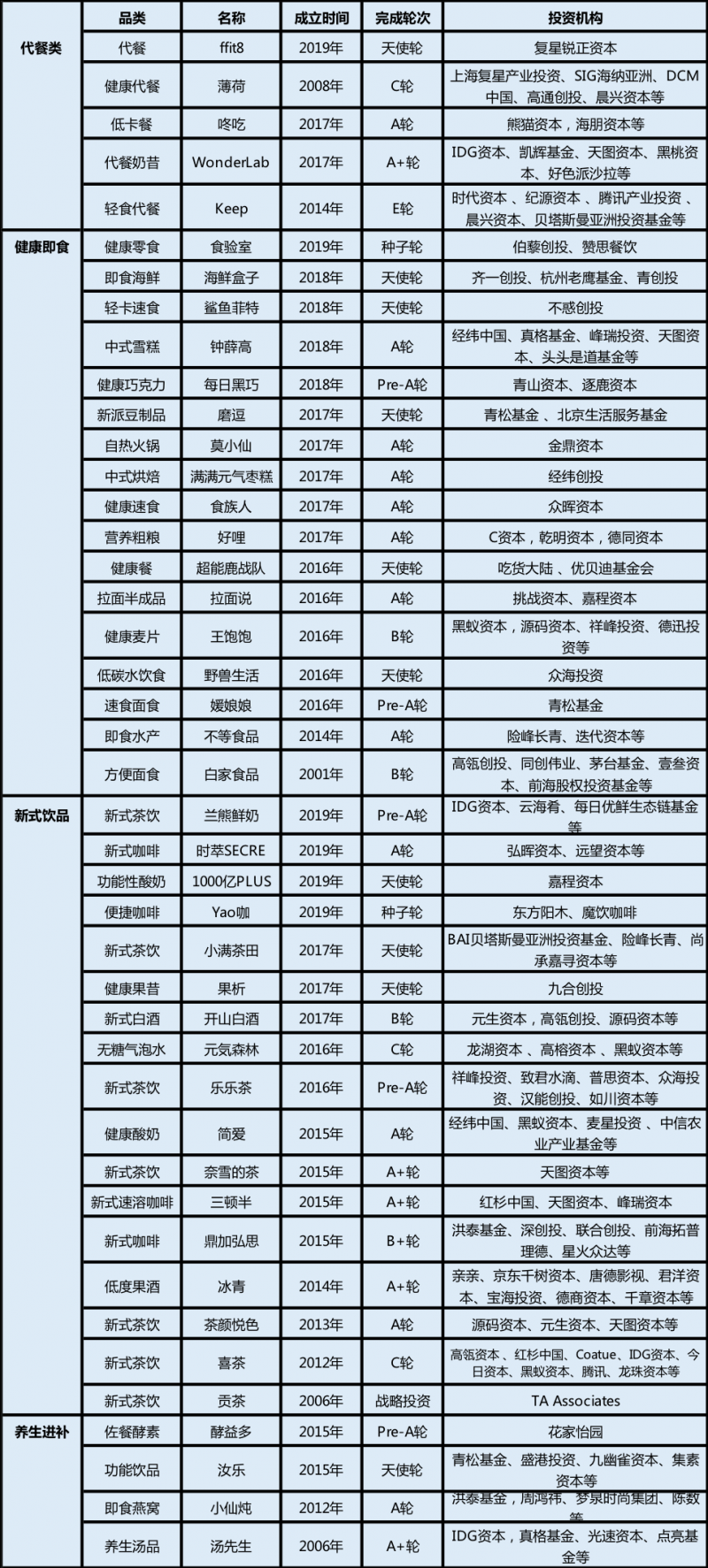 从成立时间不难看出,“健康爽”的项目成长节奏迅速。诸如元气森林、钟薛高、王饱饱等已火遍全网的品牌,成立也不过4年时间。