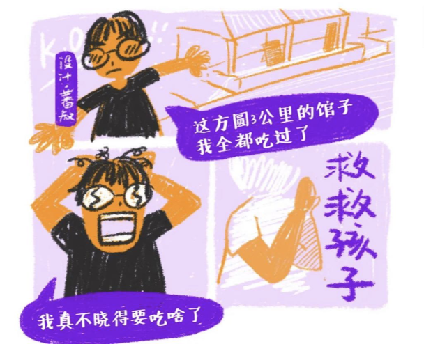 茶颜悦色1周前发布的公众号文章里,漫画的形式,配色上使用橙色和紫色为主,一种“说不上哪里好,也说不出哪里不好”的奇怪反应,但印象深刻。
