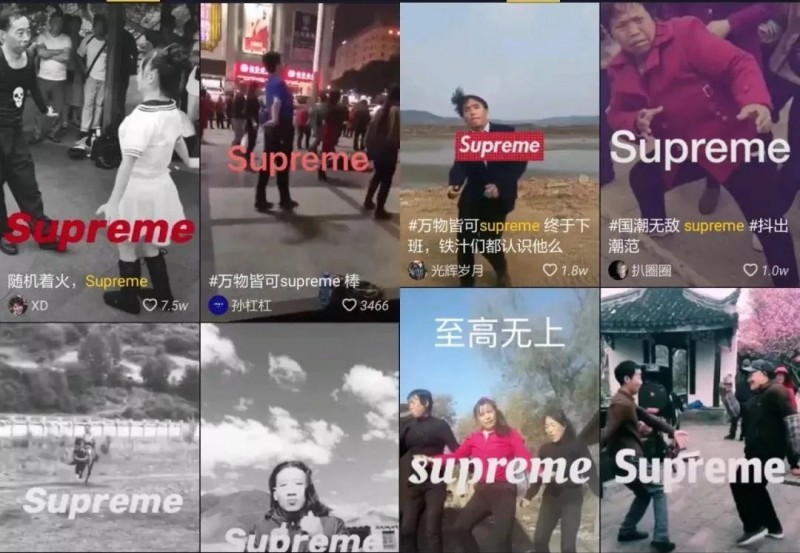 在抖音上,随着“万物皆可Supreme”的走红,“土潮”成为了一个新的热词。潮牌和“土味”的混搭,为Supreme营造出了火热的话题,为品牌赚足了流量,也让越来越多用户开始了解Suepreme,消除了用户和潮牌的距离感,扩大了品牌的受众群体。